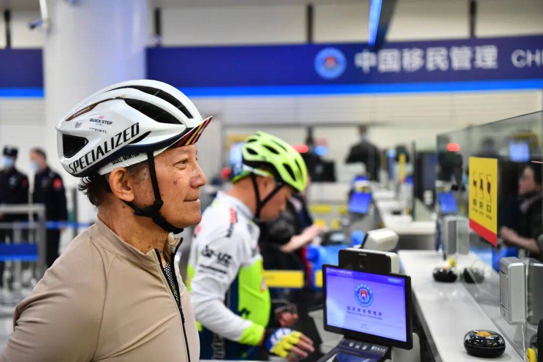 深港骑行爱好者常身着专业装备,推着山地车经专门加宽优化的查验通道轻松办理出入境手续,开启跨境绿色骑行之旅。